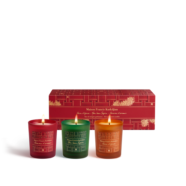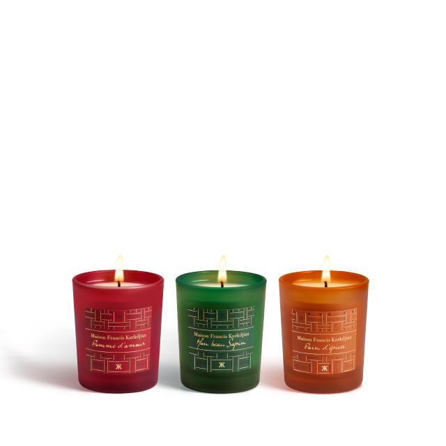 Returning this year, the colorful trio of Mon beau Sapin, Pomme d’amour and Pain d’épices scented candles brings a warm, festive glow to a wintry Paris. This limited-edition set invites you to discover the woody, subtly resinous scent of Mon beau Sapin; the promise of childhood delights with the sweet and spicy warmth of Pain d’épices; and the juicy, familiar scent of a generously caramelized Pomme d’amour. Festive and elegant, this collection instantly fills the air with the delicious fragrances of the holiday season. Made in France, each candle is crafted from a blend of mineral and vegetable wax and features three braided cotton wicks to ensure an optimal burn and olfactory quality, with an estimated burn time of 24 hours per candle.